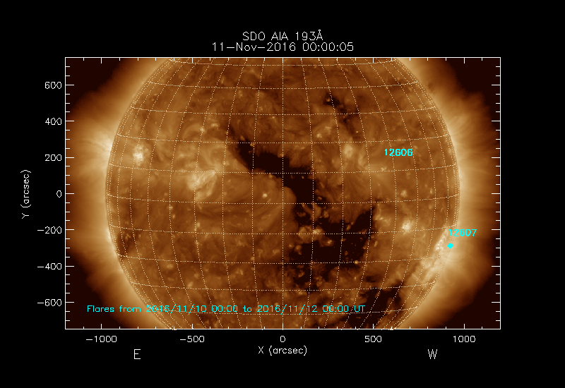 Note that some types of solar emission are more likely to be geo-effective if they originate from the western half to the disk