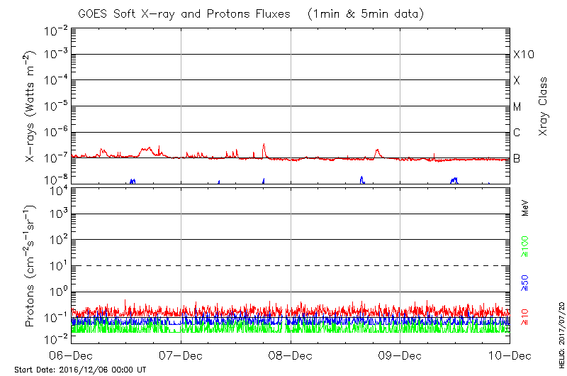 This page provides light-curves generated from GOES soft X-ray and Particle data for the date indicated at the top and the preceding three days.