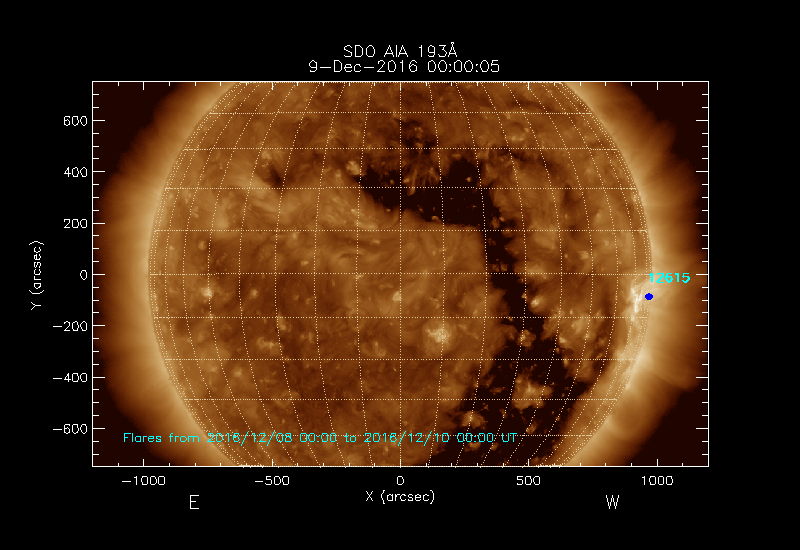 Note that some types of solar emission are more likely to be geo-effective if they originate from the western half to the disk