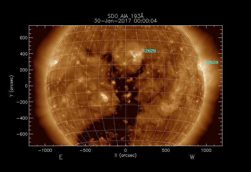 Note that some types of solar emission are more likely to be geo-effective if they originate from the western half to the disk