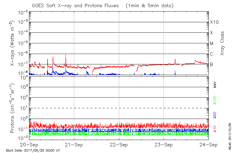 This page provides light-curves generated from GOES soft X-ray and Particle data for the date indicated at the top and the preceding three days.