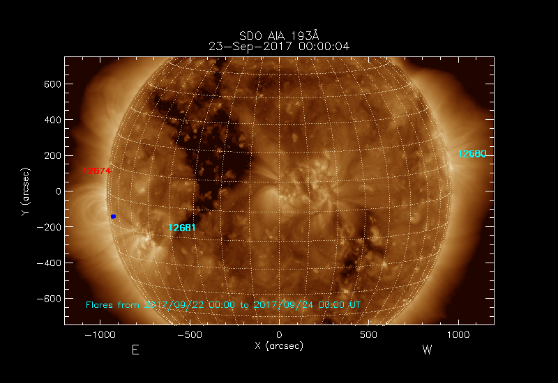 Note that some types of solar emission are more likely to be geo-effective if they originate from the western half to the disk