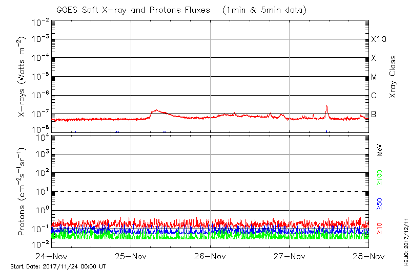 This page provides light-curves generated from GOES soft X-ray and Particle data for the date indicated at the top and the preceding three days.