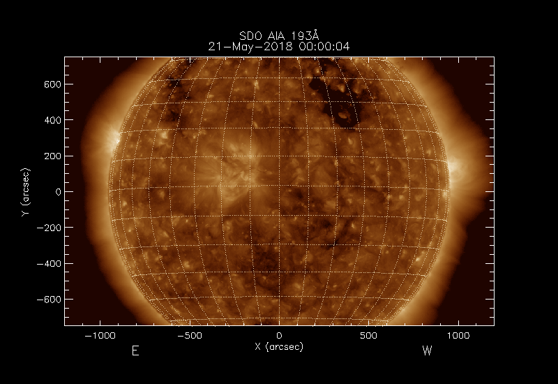 The image used is normally SDO AIA 193Å but PROBA2 SWAP 194Å images are used if no SDO data are available.