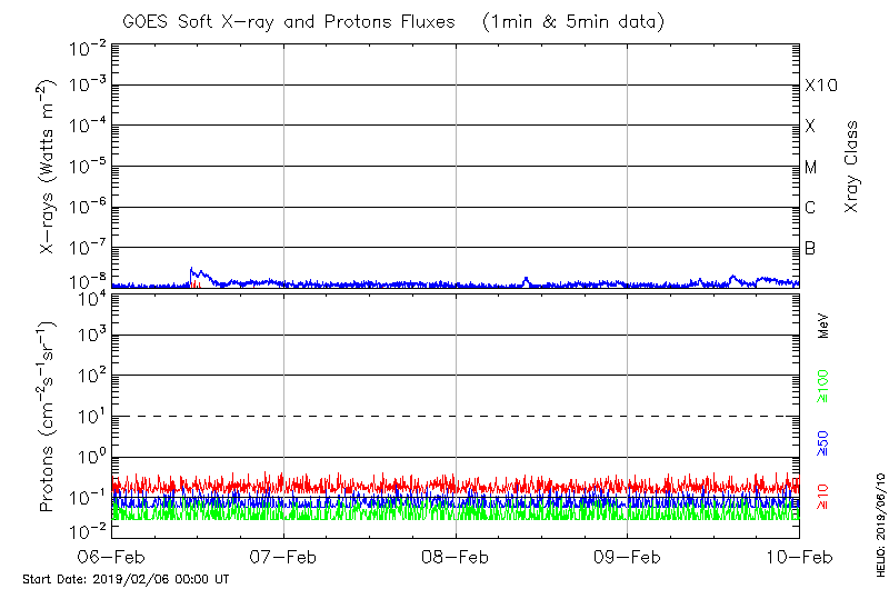 This page provides light-curves generated from GOES soft X-ray and Particle data for the date indicated at the top and the preceding three days.