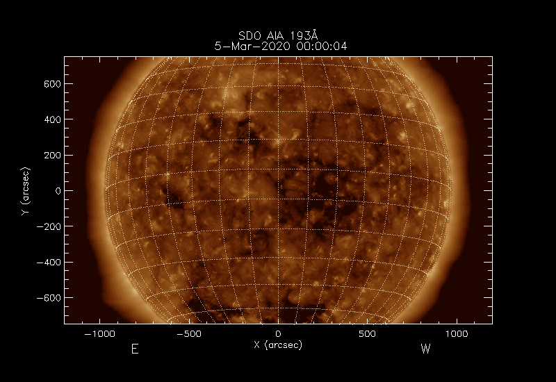 The image used is normally SDO AIA 193Å but PROBA2 SWAP 194Å images are used if no SDO data are available.