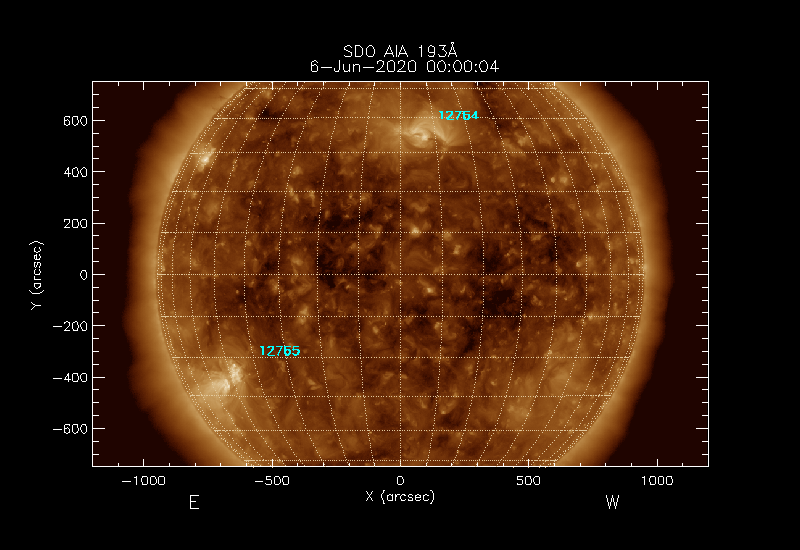Click on an Active Region plot to display the Region Report including the region evolution and flaring history. HEC Search for NOAA Active Regions (SRS) records for this date and the day before.