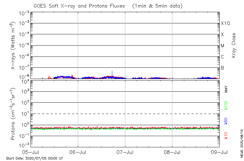 This page provides light-curves generated from GOES soft X-ray and Particle data for the date indicated at the top and the preceding three days.