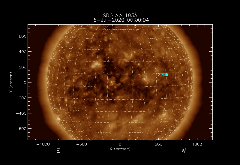 Click on an Active Region plot to display the Region Report including the region evolution and flaring history. HEC Search for NOAA Active Regions (SRS) records for this date and the day before.