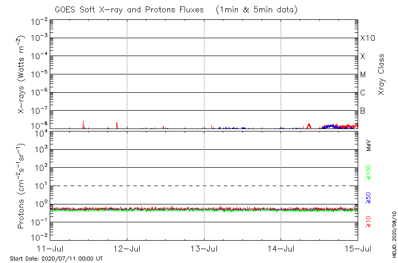 This page provides light-curves generated from GOES soft X-ray and Particle data for the date indicated at the top and the preceding three days.