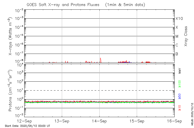 This page provides light-curves generated from GOES soft X-ray and Particle data for the date indicated at the top and the preceding three days.