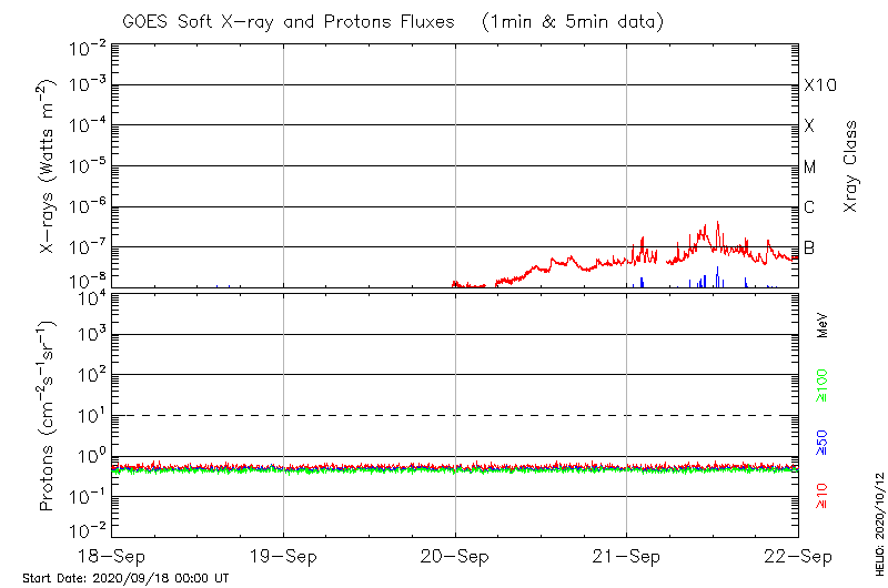 This page provides light-curves generated from GOES soft X-ray and Particle data for the date indicated at the top and the preceding three days.