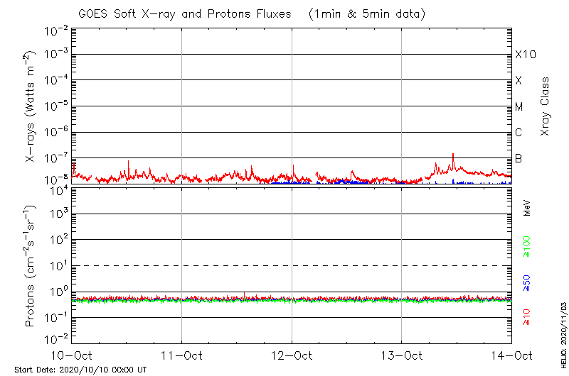 This page provides light-curves generated from GOES soft X-ray and Particle data for the date indicated at the top and the preceding three days.