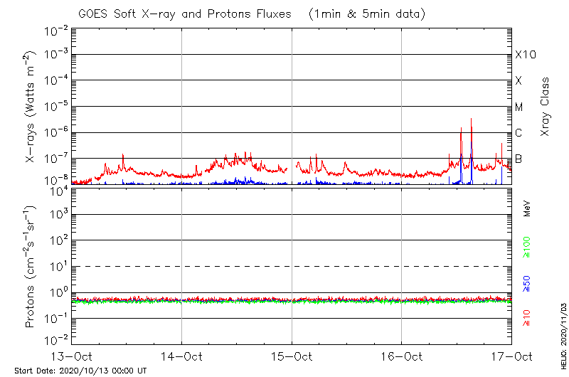 This page provides light-curves generated from GOES soft X-ray and Particle data for the date indicated at the top and the preceding three days.