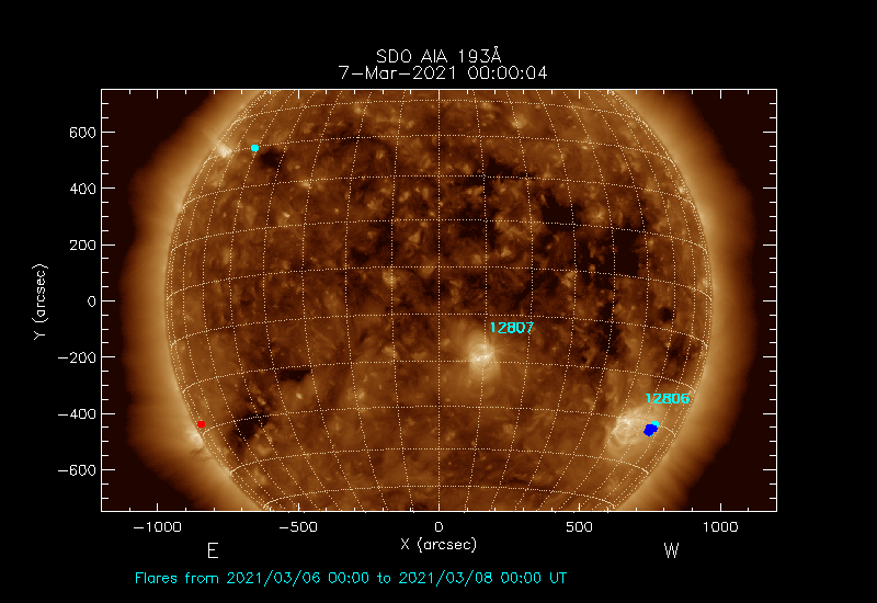 Locations of Active Regions and Flares on   2021/03/07