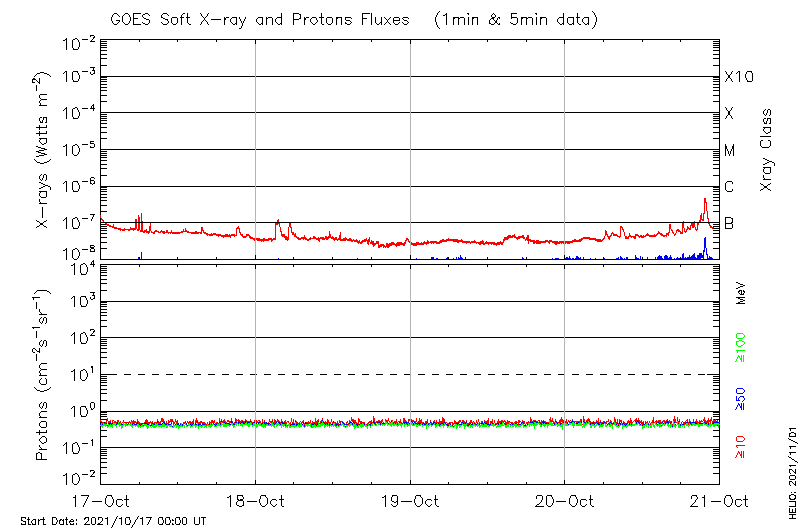 This page provides light-curves generated from GOES soft X-ray and Particle data for the date indicated at the top and the preceding three days.