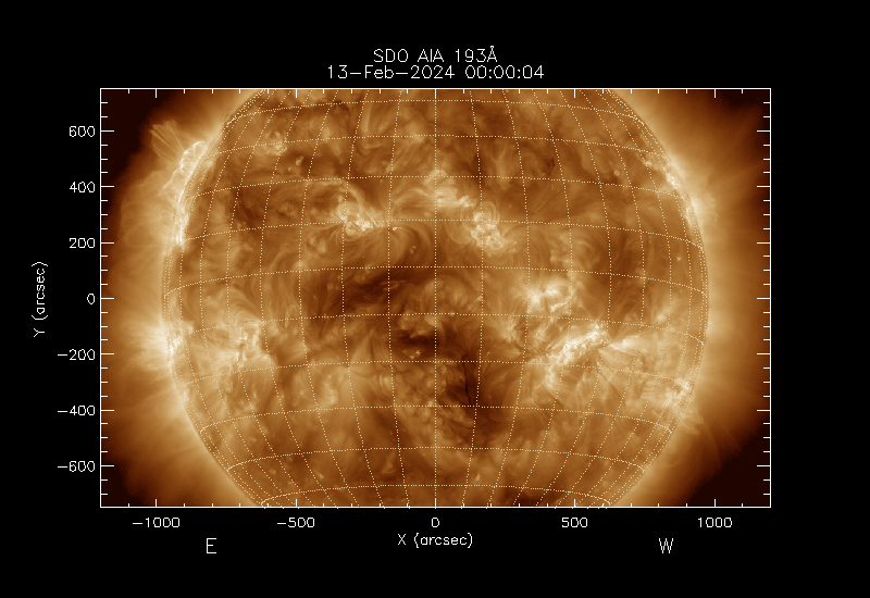 The image used is normally SDO AIA 193Å but PROBA2 SWAP 194Å images are used if no SDO data are available.