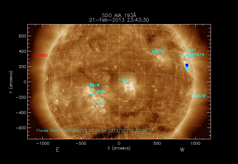 The numbers in turquoise designate Active Regions;