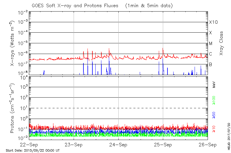 This page provides light-curves generated from GOES soft X-ray and Particle data for the date indicated at the top and the preceding three days.