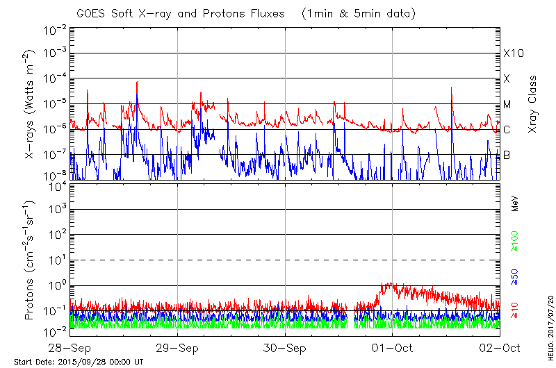 This page provides light-curves generated from GOES soft X-ray and Particle data for the date indicated at the top and the preceding three days.