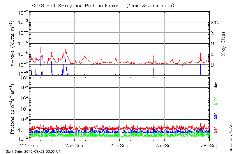 This page provides light-curves generated from GOES soft X-ray and Particle data for the date indicated at the top and the preceding three days.