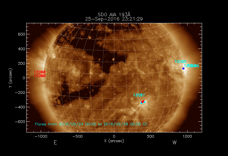 The numbers in turquoise designate Active Regions;