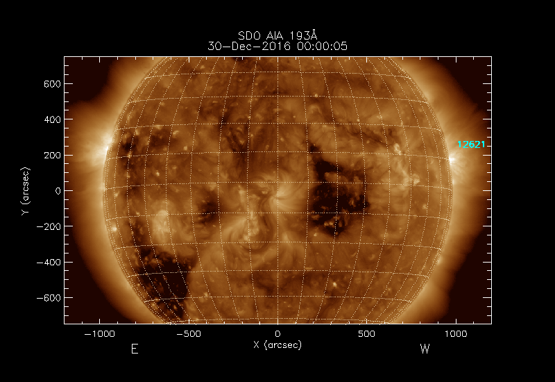 The image used is normally SDO AIA 193Å but PROBA2 SWAP 194Å images are used if no SDO data are available.