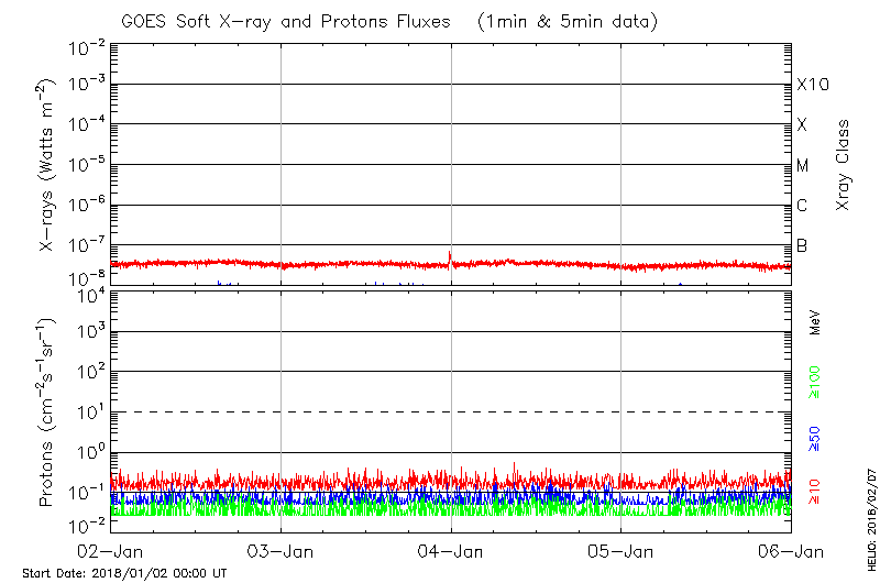 This page provides light-curves generated from GOES soft X-ray and Particle data for the date indicated at the top and the preceding three days.