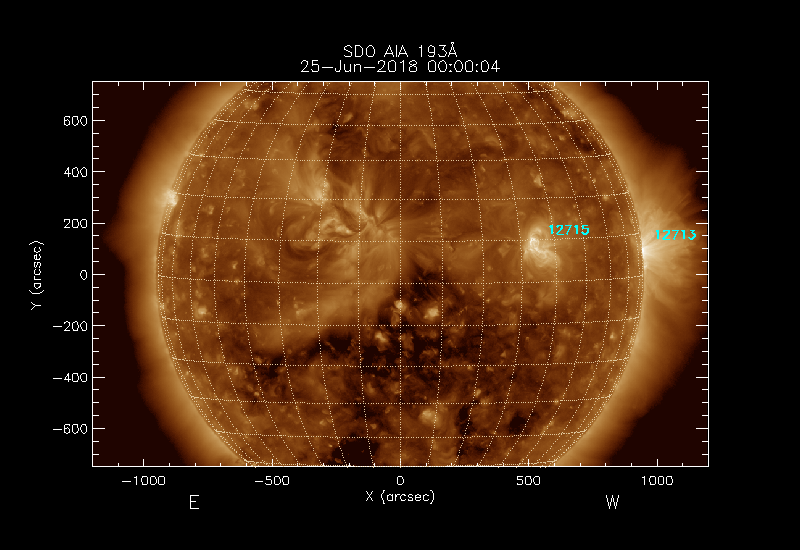 Note that some types of solar emission are more likely to be geo-effective if they originate from the western half to the disk (right of the central meridian).