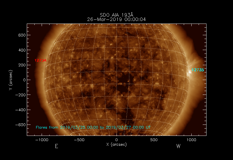 Note that some types of solar emission are more likely to be geo-effective if they originate from the western half to the disk