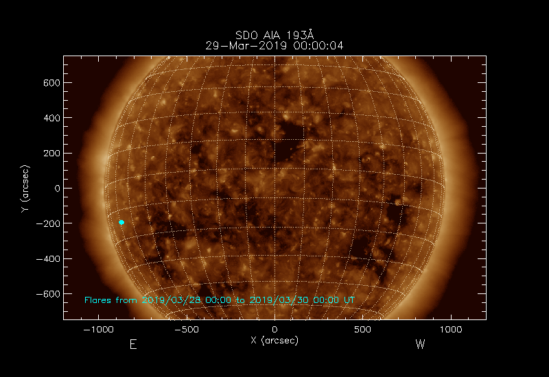 • The colour of the dot gives a rough indication of when the flare occurred,