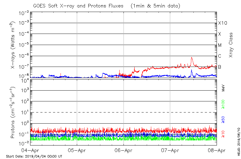 This page provides light-curves generated from GOES soft X-ray and Particle data for the date indicated at the top and the preceding three days.