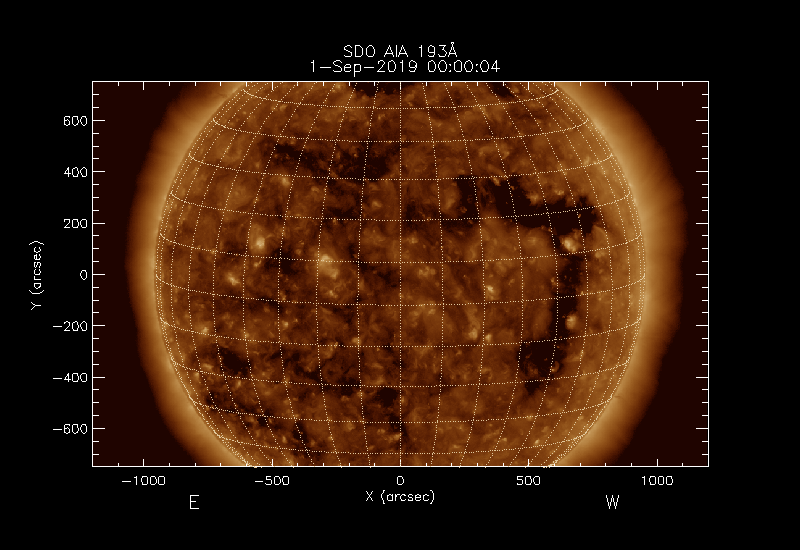 The image used is normally SDO AIA 193Å but PROBA2 SWAP 194Å images are used if no SDO data are available.