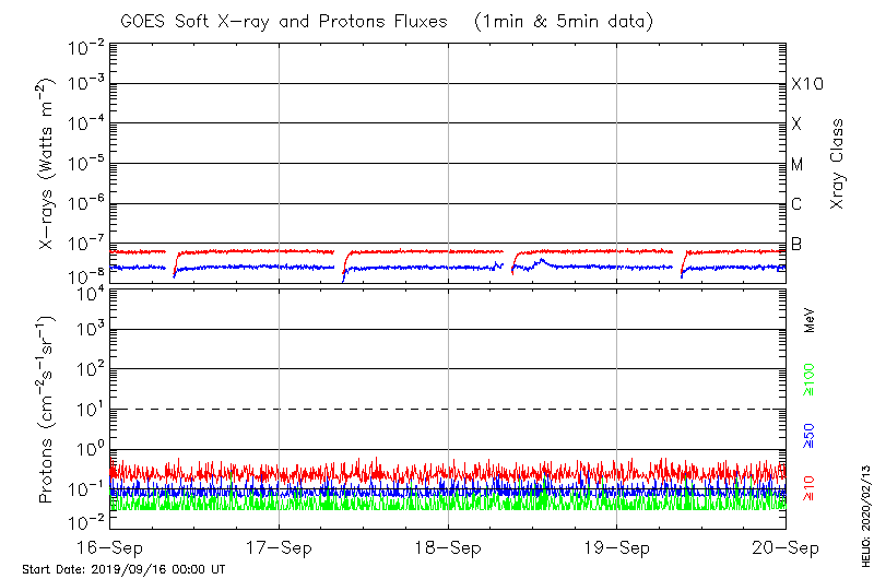 This page provides light-curves generated from GOES soft X-ray and Particle data for the date indicated at the top and the preceding three days.