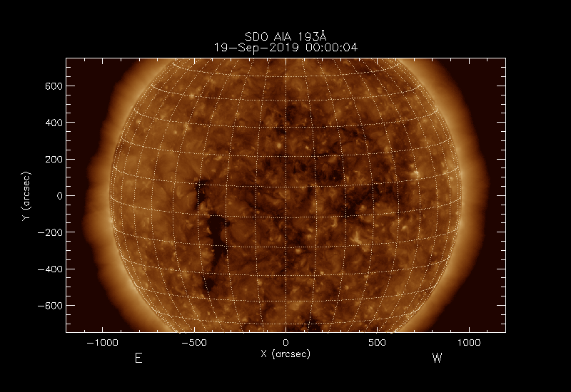 The image used is normally SDO AIA 193Å but PROBA2 SWAP 194Å images are used if no SDO data are available.