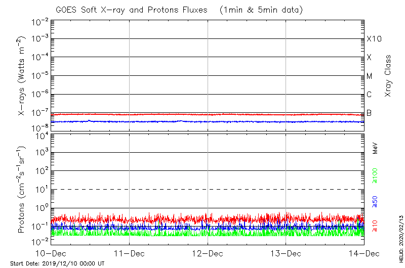 This page provides light-curves generated from GOES soft X-ray and Particle data for the date indicated at the top and the preceding three days.
