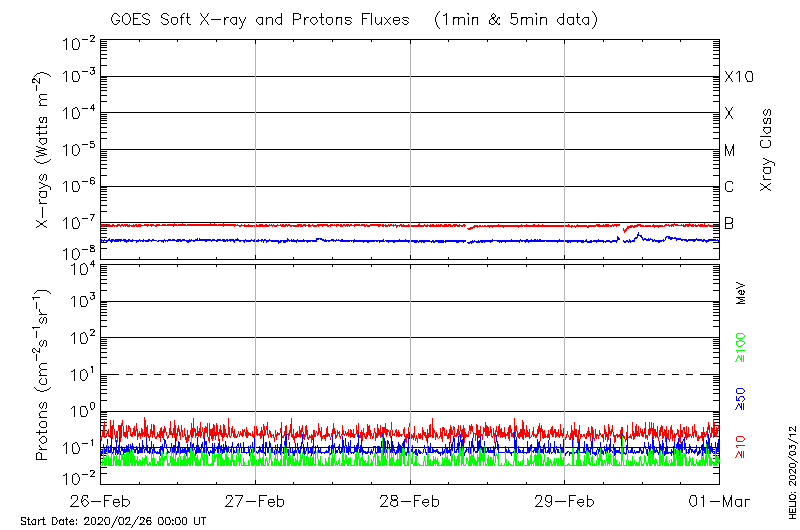 This page provides light-curves generated from GOES soft X-ray and Particle data for the date indicated at the top and the preceding three days.