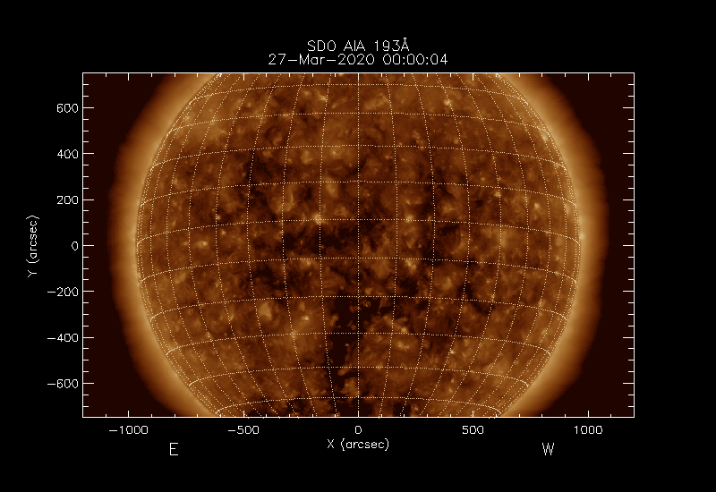 The image used is normally SDO AIA 193Å but PROBA2 SWAP 194Å images are used if no SDO data are available.