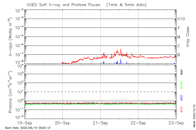 This page provides light-curves generated from GOES soft X-ray and Particle data for the date indicated at the top and the preceding three days.