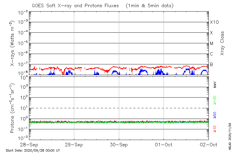 This page provides light-curves generated from GOES soft X-ray and Particle data for the date indicated at the top and the preceding three days.