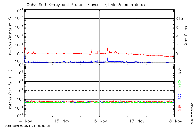 This page provides light-curves generated from GOES soft X-ray and Particle data for the date indicated at the top and the preceding three days.