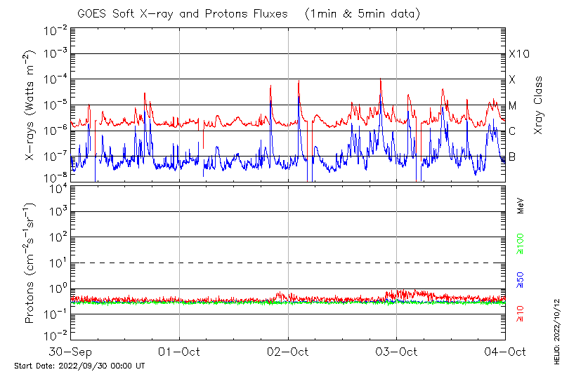 This page provides light-curves generated from GOES soft X-ray and Particle data for the date indicated at the top and the preceding three days.